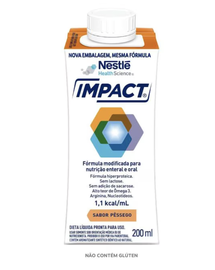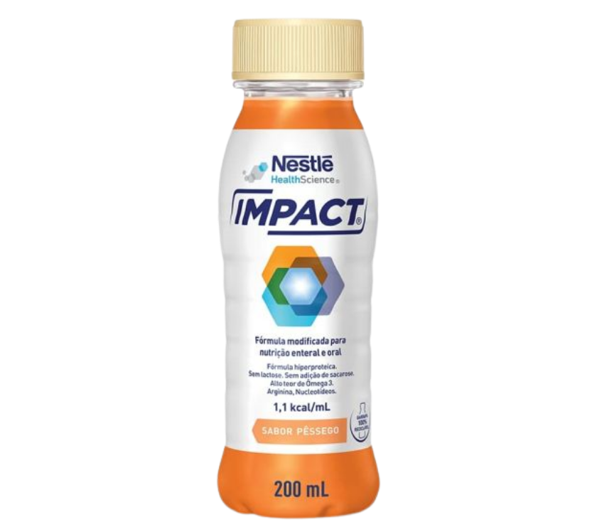 Impact Nestlé é uma fórmula líquida completa e pronta para uso, desenvolvida com nutrientes selecionados para auxiliar no suporte nutricional de pacientes em recuperação. Contém ingredientes balanceados que favorecem a manutenção do organismo e podem contribuir para melhores resultados clínicos. Embalagem prática de 200ml, ideal para uso hospitalar ou domiciliar.