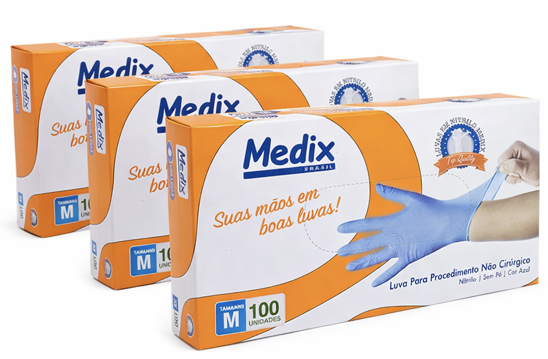 Kit Luva Nitrílica Azul Claro S/ Pó – Tam M 300 unid.| Medix